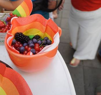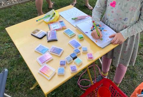 Bei Snacks und Sekt wurden Kleider getauscht und Kontakte geknüpft, die Kinder haben sich über Planschbecken und Malkreide gefreut.