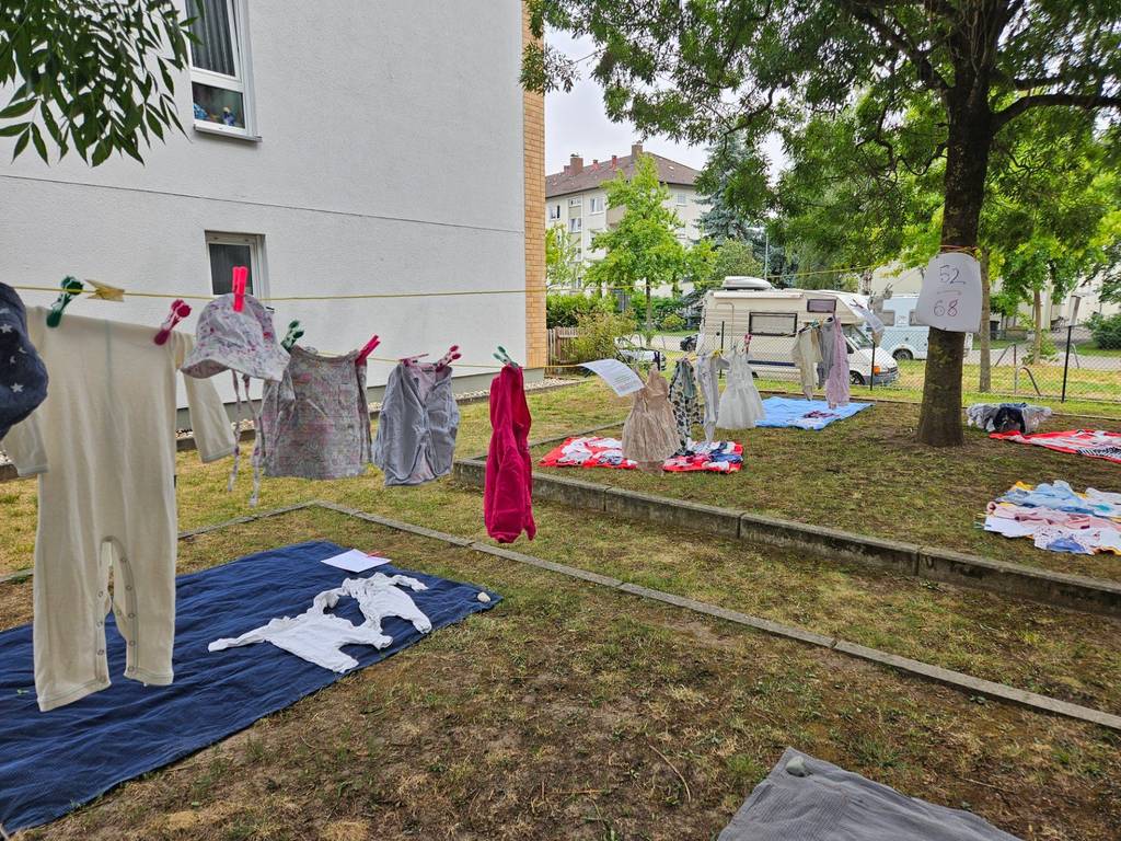 Bei schönstem Wetter haben wir am Samstag, dem 19. Juli 2025 im Innenhof hinter der Ladenkirche unsere erste Kinderkleider-Tauschparty gefeiert.