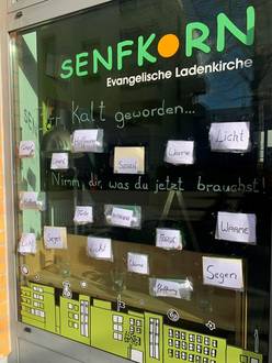Also wortwörtlich, aber auch übertragen. Trump wurde gewählt, die Ampelkoalition hat sich verabschiedet. Gar nicht so einfach, da zuversichtlich zu bleiben. Nimm dir, was du jetzt brauchst – heißt das Motto auf der Fensterscheibe. Wärme, Hoffnung, Segen, Farben, Licht – was tut dir in der grauen Jahreszeit gut?