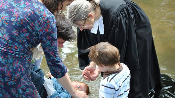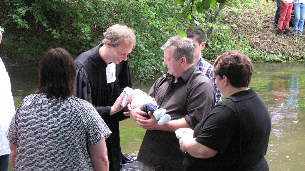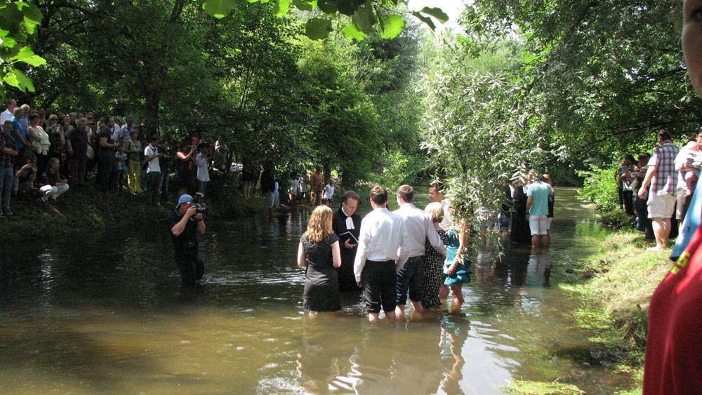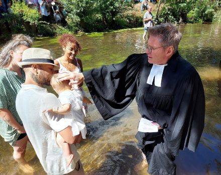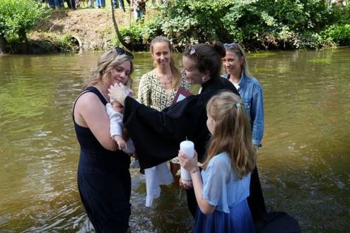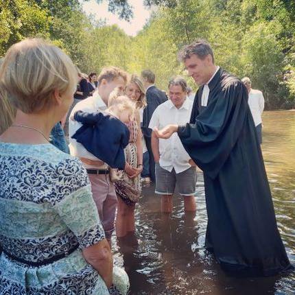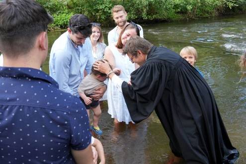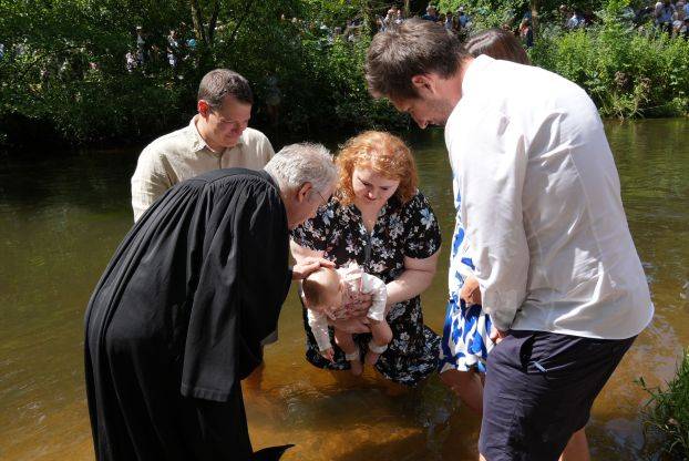 Das Tauffest begann um 11 Uhr mit einem Taufgottesdienst auf der Wiese sowie direkt an der Alb. Nach dem Gottesdienst blieben viele Familien noch auf dem Gelände, um die Taufe als Familie oder in größerer Gruppen bei einem Picknick zu feiern.