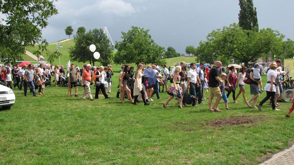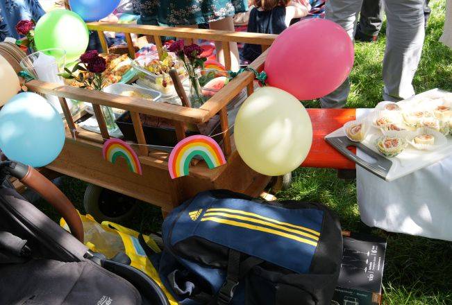 Wer wollte, konnte sich vor Ort am Crêpe- oder am Flammkuchen-Stand versorgen. Für alkoholfreie Kaltgetränke war ebenfalls gesorgt. Viele hatten Decken, Deko und viel Leckeres fürs eigene Picknick mitgebracht. Gegen 15 Uhr endete das Tauffest offiziell.