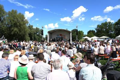 Nach Abschluss des Gottesdienstes und aller Taufen sind die Familien eingeladen, noch auf dem Gelände zu bleiben und als Familien oder in größeren Gruppen die Taufe zu feiern. Dafür stehen alle Bänke zur Verfügung, die wir auch für den ersten Teil des Gottesdienstes genutzt haben, sowie insgesamt ausreichend Biertischgarnituren. Eine Möglichkeit, die Tische und Bänke zu reservieren, gibt es nicht. Für diejenigen Familien, die nach dem Gottesdienst noch picknicken möchten, wäre es deshalb wichtig, dafür noch eigene Decken mitzubringen. Es besteht die Möglichkeit, sich vor Ort an einem Flammkuchen-Stand versorgen zu lassen. Auch ein Kühlwagen mit nicht alkoholischen Getränken ist vorhanden. Natürlich kann jeder auch sein eigenes Picknick mitbringen. Das Grillen ist in diesem Bereich der Günther-Klotz-Anlage generell von der Stadt Karlsruhe untersagt.