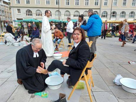 Fußwaschung auf dem Marktplatz