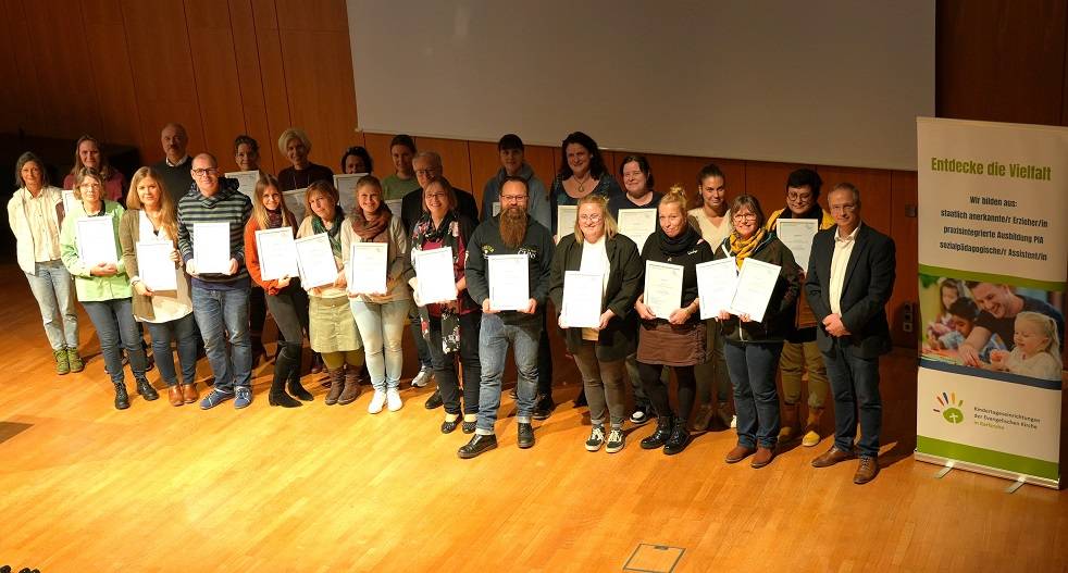 Nach einem Jahr haben nun alle Kindertageseinrichtungen ein Gewaltschutzkonzept erarbeitet. Die Evangelische Kirchenverwaltung mit ihrer Fachberatung hat hier die Kita-Leitungen und Teams fachlich unterstützt. Ein Trägerkonzept wurde erstellt, es gab Schulungen für die Teams. In einer kleinen Feierstunde erhielten die Kita-Leitungen am 14. November ein Zertifikat zum Dank für die geleistete Arbeit.
