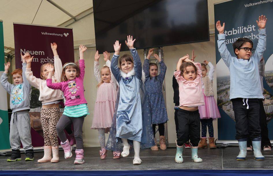 Die Volkswohnung hat am August-Klingler-Areal im Karlsruher Stadtteil Daxlanden eines ihrer größten Bauprojekte der jüngeren Zeit realisiert. Auf dem rund 3,5 Hektar großen Grundstück sind in sieben Gebäuden insgesamt 357 Wohnungen entstanden. Etwa 900 Menschen finden hier ein neues Zuhause. Mittendrin befindet sich die evangelische Kita “Sonnenschein”, die in neuen Räumen Platz für 80 Kinder bietet. Auch die Caritas ist mit einer Tagespflegeeinrichtung vertreten.