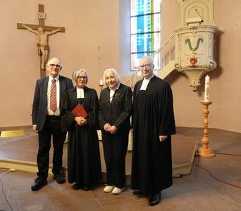 Dekan Dr. Thomas Schalla, der in der evangelischen Kirche in Grünwettersbach die Einführung vornahm, überreichte Diana Schwach im Festgottesdienst die von Landesbischöfin Heike Springhart unterzeichnete Einführungsurkunde und beglückwünschte die Gemeinde zu ihrer neuen Pfarrerin. Für schwungvolle Rhythmen sorgten die Hillside Singers, der Pop- und Gospelchor der Gemeinde, unter der Leitung von Johann Christoph Haake.