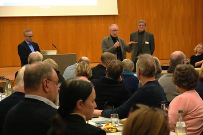Zum Abschluss der Tagung wurde Volker Rink, langjähriges Präsidiumsmitglied und seit 24 Jahren als Synodaler in der Stadtsynode aktiv, vom Synodenvorsitzenden Prof. Gernot Goll verabschiedet und für seine engagierte Arbeit gedankt. Anschließend waren alle Synodalen noch eingeladen, bei einem Umtrunk zusammenzubleiben.